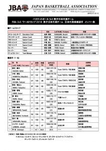 3×3男子日本代表“FIBA3×3ワールドカップ2018”日本代表候補選手発表