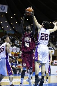 5ファウルで退場し、「僕はMVPじゃないです」と納得できない表情を見せた筑波大#6馬場。来年以降、納得のいく形でMVP、3連覇を目指して欲しいが、外角シュートやリバウンドなど成長の跡が見られた。