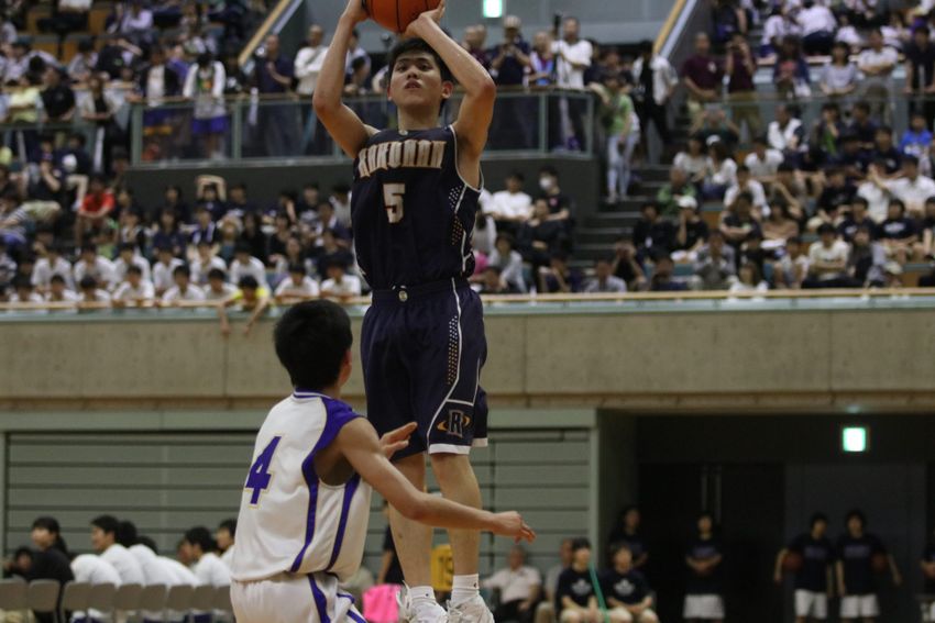 主力を務める大阪薫英女学院#12福田 一方の男子決勝も終盤までもつれる接戦に。 試合は、1Qで3点リードした東山が2Qでも#10松野のシュートなどでリードを広げ、一時は2桁の点差を付ける。しかし洛南も#5飯尾らが踏ん張り、前半を33-33の同点で終える。 それでも後半、東山は3Qを終えて50-45と5点リードすると、4Q出だしにも再びリードを広げる。しかし、ここから洛南が猛追。連続得点で一気に点差を詰めるとそのまま逆転に成功。残り3分を切ってからは取られたら取り返す展開となったが、最後は#9浅野がしっかりとフリースローを決めた洛南が68-67で接戦をものにした。