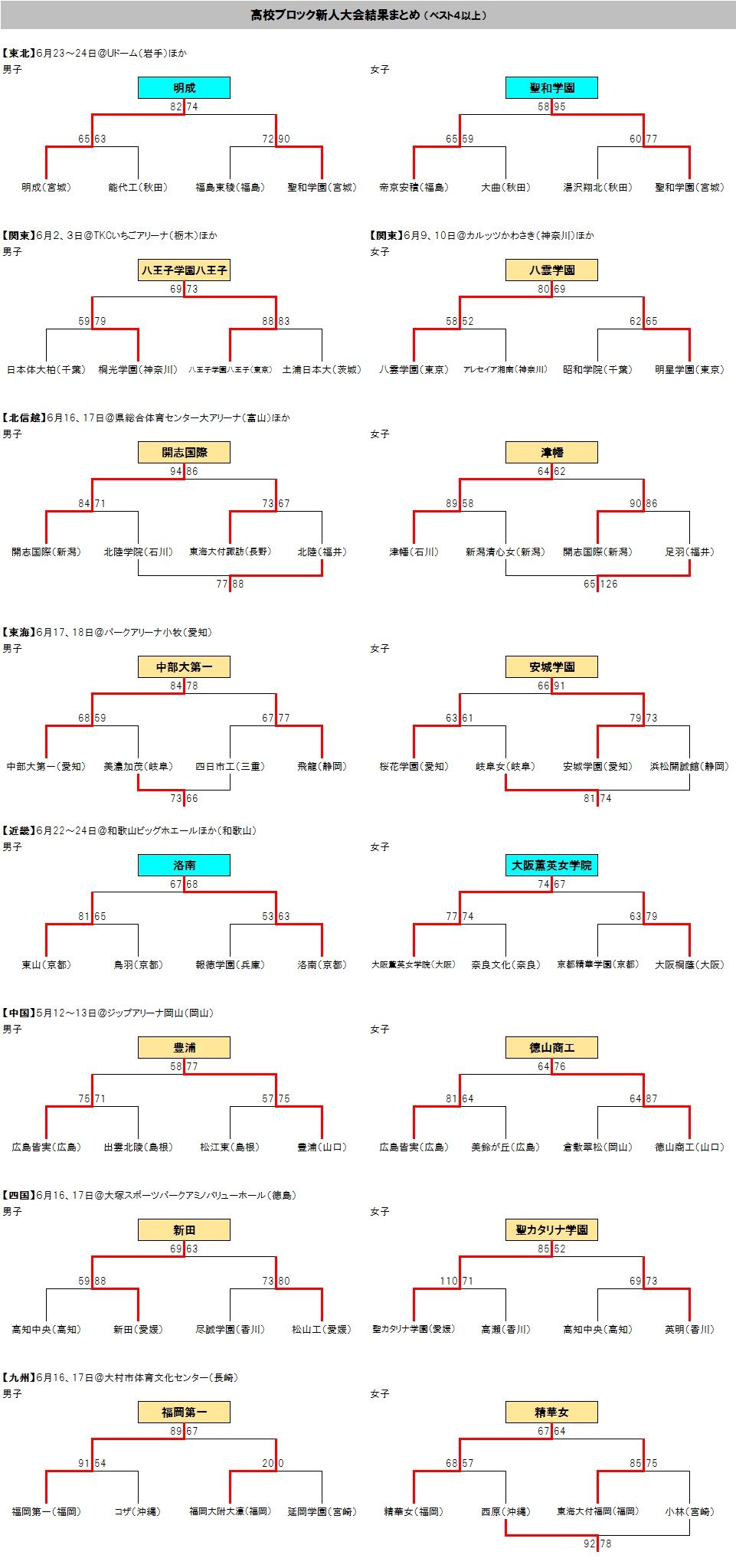 中国ブロックを皮切りに開催された高校の各ブロック大会。6月24日の東北、近畿で行われことで、全てのブロック大会が終了した。   各ブロック勝ち上がり表(ベスト4以上)