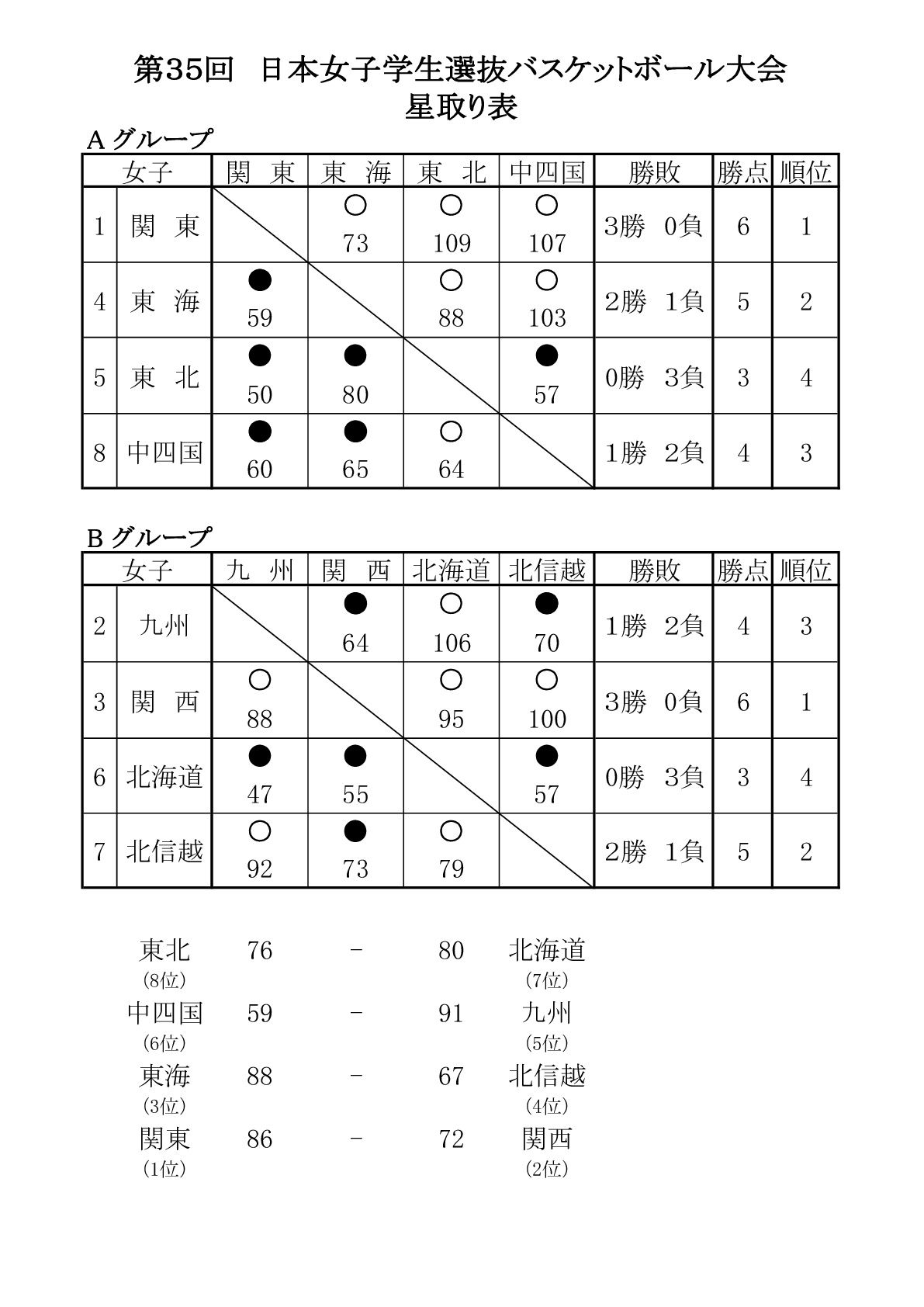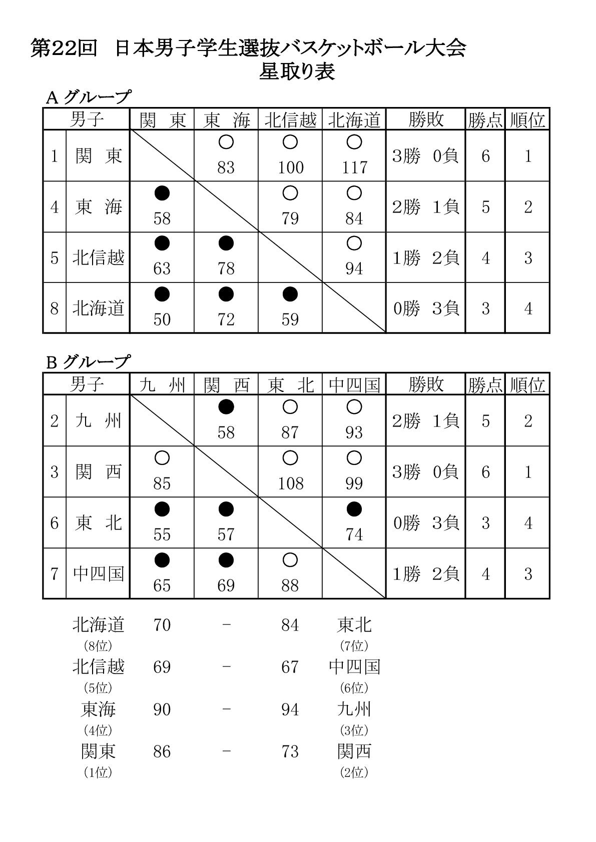 “男子第22回・女子第35回日本学生選抜バスケットボール大会”試合結果