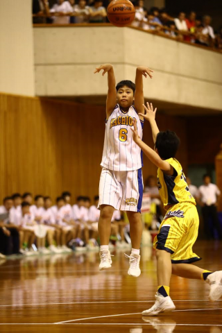 玉川なつ珠(八王子一⑥/3年/157 cm)    決勝では3Pシュート7本を含む40得点と、圧巻の得点力を見せて優勝の立役者となった玉川。「ミニバス時代から」という早いリリースから放たれるシュートは面白いようにネットを揺らした。それだけでなく、チームの司令塔としてスピードに乗ったドリブルで相手ディフェンスを巧みにかわすボール運びを見せたかと思えば、的確なパス回しで仲間のシュートを演出。さらには、激しいディフェンスも披露し、あらゆる面でチームを支えた。    昨年からスターターとして全国大会を経験していたが、昨年大会は接戦の末にベスト8に留まり。玉川自身も悔しい思いをしていただけに、最上級生として迎えた今大会では「3Pシュートはあまり得意ではないけど、最後の大会は決めようと思って打ちました」という思いをしっかりとプレーにつなげ、見事に日本一に輝いた。   (月刊バスケットボール)