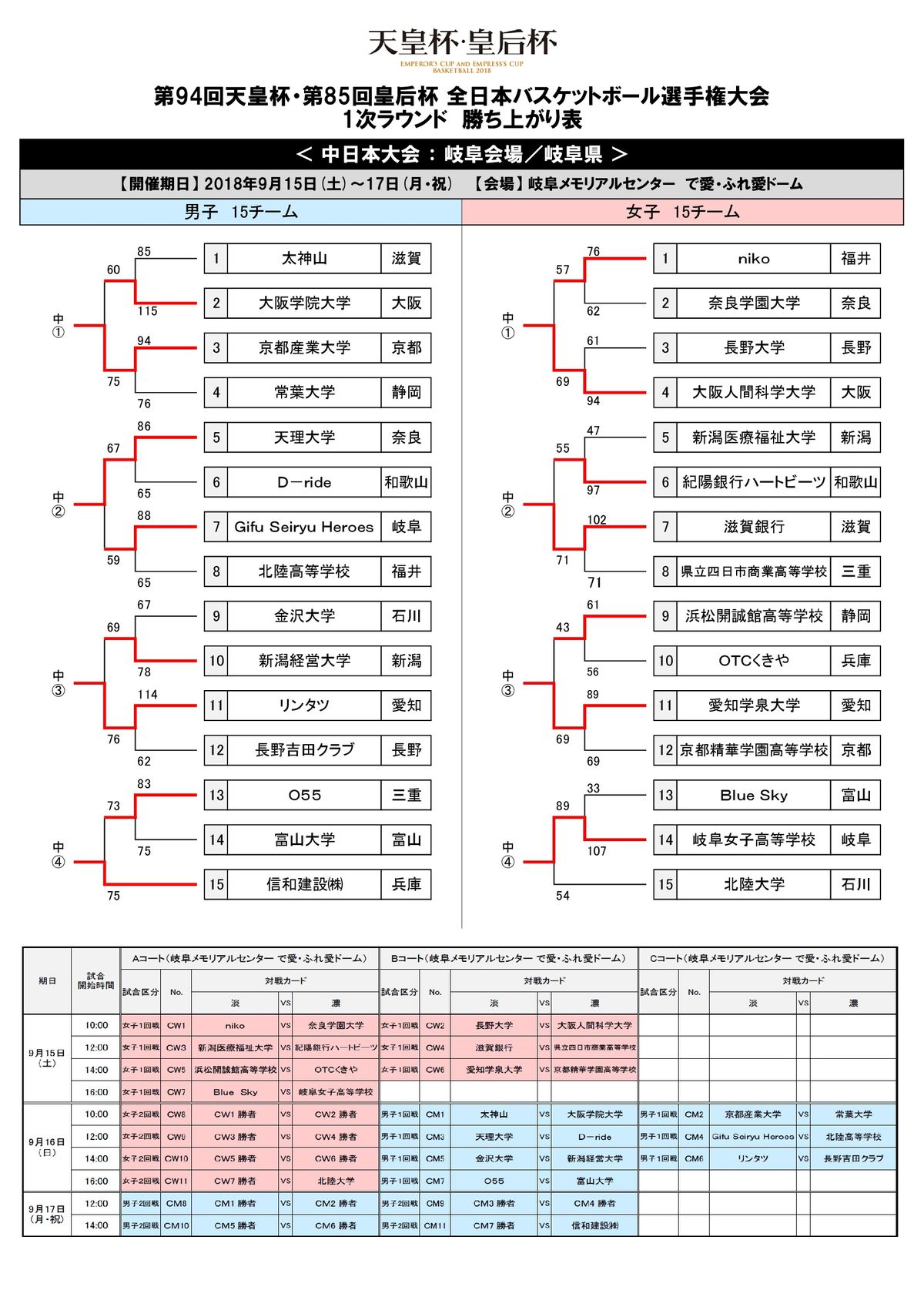 9月15~17日、“第94回天皇杯・第85回皇后杯全日本バスケットボール選手権大会1次ラウンド”が東・中・西日本で行われた。