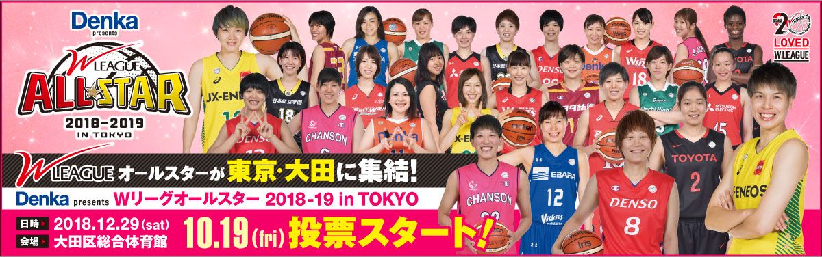 “Denka presents Wリーグオールスター 2018-19 in TOKYO”が12月29日に大田区総合体育館(東京)で開催される。 チームEASTはJX-ENEOS、富士通 、日立ハイテク、東京羽田、山梨、新潟、チームWESTはデンソー、トヨタ自動車、シャンソン化粧品、三菱電機、トヨタ紡織、アイシンAW。また、オールスター出場プレイヤーの選抜方法は、ファン投票により東西各チーム5名ずつ選抜し、ファン投票で選ばれた選手にリーグ推薦選手数名とTwitter投票選出選手を加えて対戦する。 一般投票は、オールスター特設サイトにて10月19日(金)12時より開始で、投票締切日11月18日(日)24時。ファン投票選出およびリーグ推薦選手は11月23日(金)12時に発表される。また、Twitter投票は、東西からそれぞれ最後の一名の出場選手をTwitterの得票数で決定する(一般投票で選出された選手を除く全選手が対象)。投票有効期間 11月23日(金)20時~11月25日(日)20時で、出場全選手発表は 11月26日(月)12時となっている。 ※詳しくはWリーグホームページへ。 http://www.wjbl.org/pc_index_html (月刊バスケットボール)
