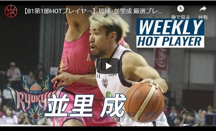 Bリーグ2018-19全試合配信の“バスケットLIVE”では、各節のHOTなプレイヤーをピックアップして、その選手のプレー集を配信しています。 10/4(木)~10/7(日)に開催されたB1第1節からは、秋田ノーザンハピネッツとの2試合で27得点・21アシストを記録した並里成(琉球ゴールデンキングス)が選ばれました。