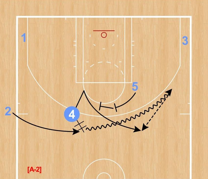 プレシーズンゲームで渡邊雄太がプレーするメンフィス・グリズリーズ。インディアナ・ペイサーズとの一戦では、4Q残り13.2秒、91-94の3点差の場面で同点3Pシュートを決めるビッグプレー。そのサイドラインインバウンズを解説しよう。 【ラインナップ】 ①(PG)ブランドン・グッドウィン ②(SG)マーケル・クロフォード ③(SF)ジェボン・カーター ④(PF)渡邉雄太 ⑤(C)アイバン・ラブ [A-1] インバウンズを②、ボールサイドのローポストに④、エルボーに①、ヘルプサイドのエルボーに⑤、コーナーに③というエントリー。 ①はボールレシーブのフェイクから④(渡邊)にダウンスクリーン④はトップ付近でボールをレシーブする。①はコーナーへ。 [A-2] ④とインバウンダーの②でハンドオフ。さらに⑤がボールスクリーンを②に仕掛け、右ウイングへ。さらに、⑤が④へスクリーンをセットし、④は右のトップ方向へカットし、②からのパスをレシーブ。④はそのまま3Pシュートを決め、オーバータイムへと突入した(最終的にグリズリーズの勝利)。 (月刊バスケットボール)