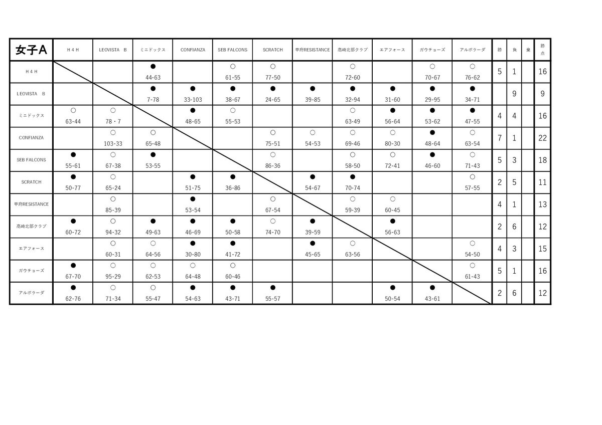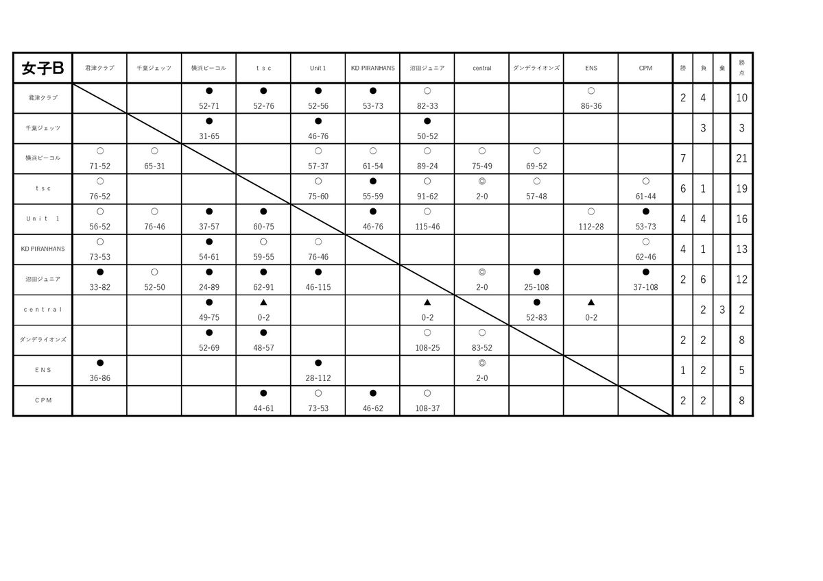 *女子Aブロック ※詳しくは関東ジュニアバスケットボールリーグホームページへ。 http://www.kanto-jr.com/ (月刊バスケットボール)
