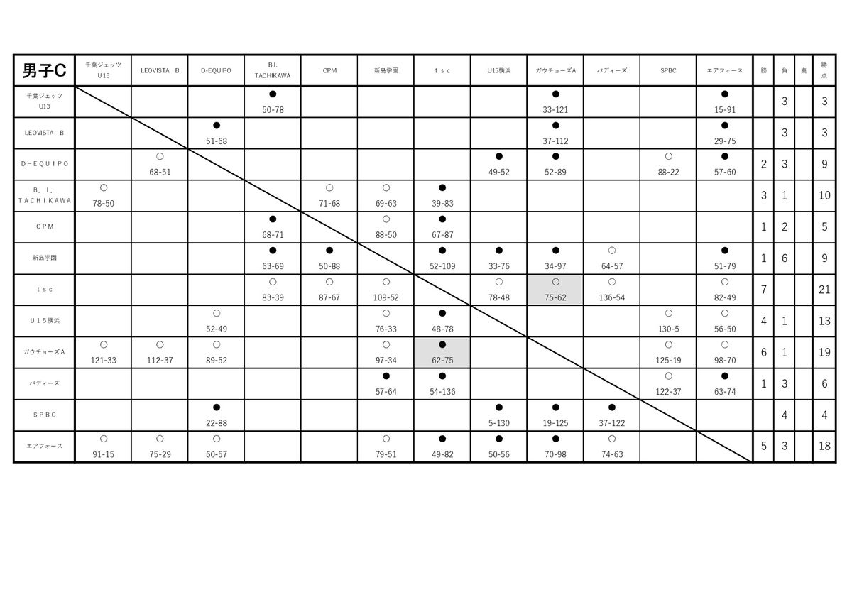 2018 年度“関東ジュニアバスケットボールリーグ戦”【途中結果①】