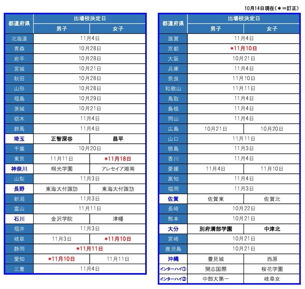 “ウインターカップ2018” 男女出場校&各都道府県予選スケジュール一覧②