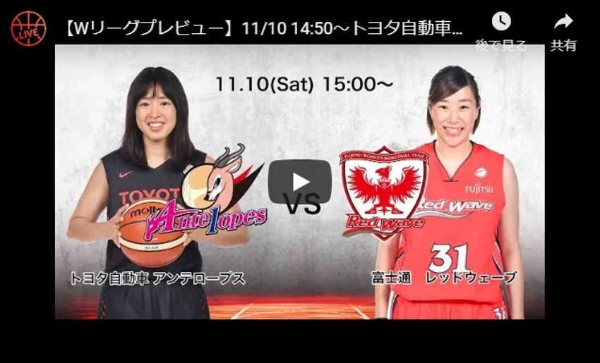 10月19日(金)開幕した女子バスケットボールの国内最高峰リーグ「第20回Wリーグ」。 今シーズンから、Wリーグを配信することになった『バスケットLIVE』では、配信カードの対戦プレビューや選手密着動画を公開していくとのこと。 今回は11月10日(土)に行われる第4週「トヨタ自動車アンテロープス vs. 富士通レッドウェーブ」の対戦プレビューです!! <第20回Wリーグ(2018-19シーズン)> 2018年11月10日(土)15:00ティップオフ@北九州市立総合体育館トヨタ自動車アンテロープス vs. 富士通レッドウェーブ https://www.youtube.com/watch?v=QuHmm3J3ncc 【“第20回Wリーグ配信”バスケットLIVE】 https://basketball.mb.softbank.jp/?utm_source=partner&utm_medium=basketball-zine&utm_campaign=006 (月刊バスケットボール)