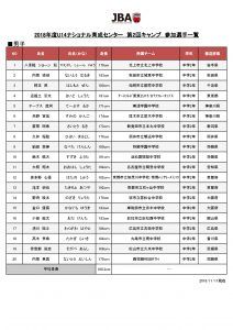 JBAでは昨年度に引き続き、ユース育成世代の強化育成事業として、U13、U14カテゴリーのナショナル育成センターを開催している。 ナショナル育成センターではU13、U14の年代別に、選出された男女各20~30名の選手を対象として、世界に通用する選手の育成を念頭に、年代に応じたフィジカルトレーニングや技術指導などを行う。 第2回キャンプの参加メンバーは以下のとおり。 ■2018年度“U14ナショナル育成センター第2回キャンプ”参加選手メンバー表 【男子】 ★八重樫 ショーン 龍(176㎝/北上市立北上中学校2年) ★内藤 晴樹(183㎝/秋田市立城東中学校2年) ★橋本 然(180㎝/船橋市立前原中学校2年) ★道祖土 聖太(181㎝/アースフレンズ東京ZU15/DTブルーチップス/中学2年) ★テーブス 流河(171㎝/実践学園中学校2年) ★角野 寛伍(174㎝/厚木市立厚木中学校2年) ★斎藤 瑠希(173㎝/新発田市立本丸中学校2年) ★久井 理稔(176㎝/福井市立明道中学校2年) ★鍋田 憲伸(180㎝/静岡学園中学校2年) ★鈴木 楓大(191㎝/浜松開誠館中学校2年) ★大橋 翔太(194㎝/名古屋市立明豊中学校2年) ★波多野 心優(182㎝/京都市立加茂川中学校2年/京都ハンナリーズU15) ★滝本 純也(192㎝/京都市立双ヶ丘中学校2年) ★野﨑 稜太(176㎝/堺市立若松台中学校2年) ★金口 優真(183㎝/岸和田市立春木中学校2年) ★小田 健太(183㎝/総社市立総社西中学校2年) ★湧川 颯斗(184㎝/広島市立古田中学校2年) ★髙木 来希(184㎝/丸亀市立南中学校2年) ★曽我部 嵐史(168㎝/松山市立久米中学校2年) ★内藤 英真(175㎝/福岡REBIRTH/中学2年)