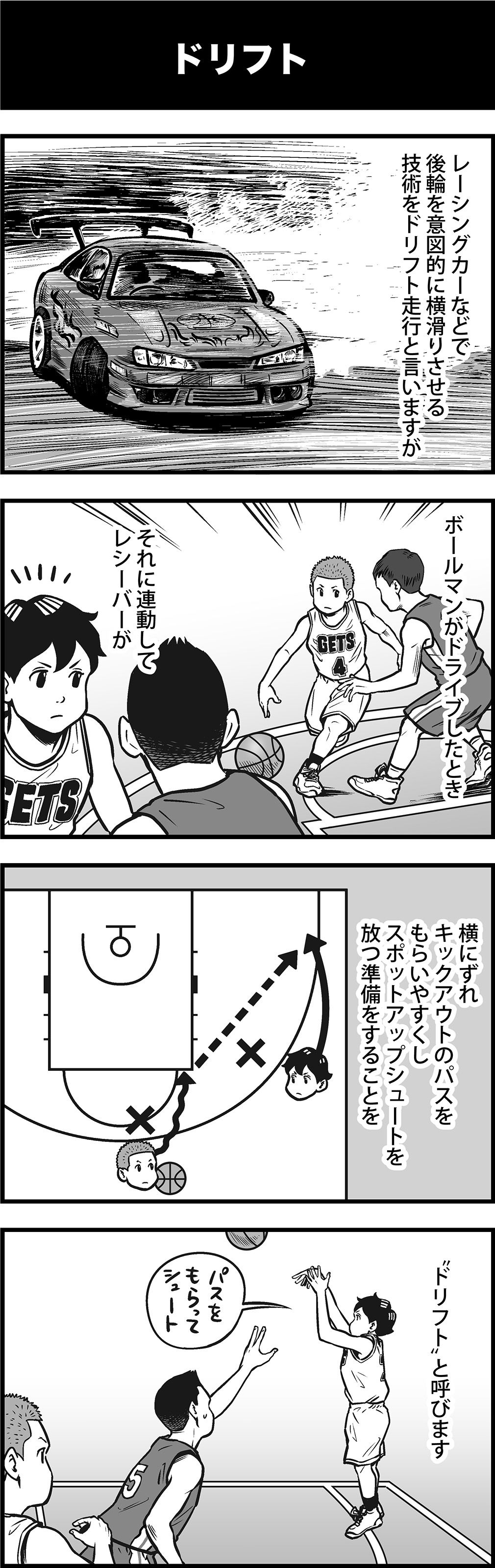 月刊バスケットボールで連載中の『まんが バスケットボール用語辞典』をウェブでも読めるように! 和製英語や造語ではなく、正しい英語のニュアンスで理解していくと、より分かりやすくなる。今回は “ドリフト”について。