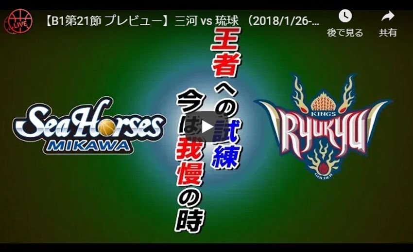 【プレビュー動画あり】B1第21節注目カード『三河vs.琉球』