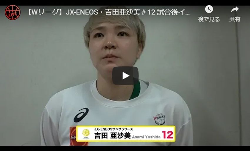 吉田亜沙美(JX-ENEOSサンフラワーズ#12)インタビュー https://www.youtube.com/watch?v=FjQfLTRRoA4
