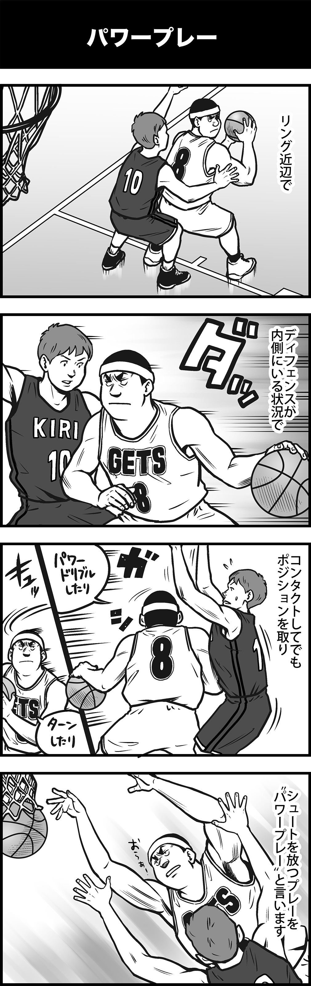 月刊バスケットボールで連載中の『まんが バスケットボール用語辞典』をウェブでも読めるように! 和製英語や造語ではなく、正しい英語のニュアンスで理解していくと、より分かりやすくなる。今回は “パワープレー”について。