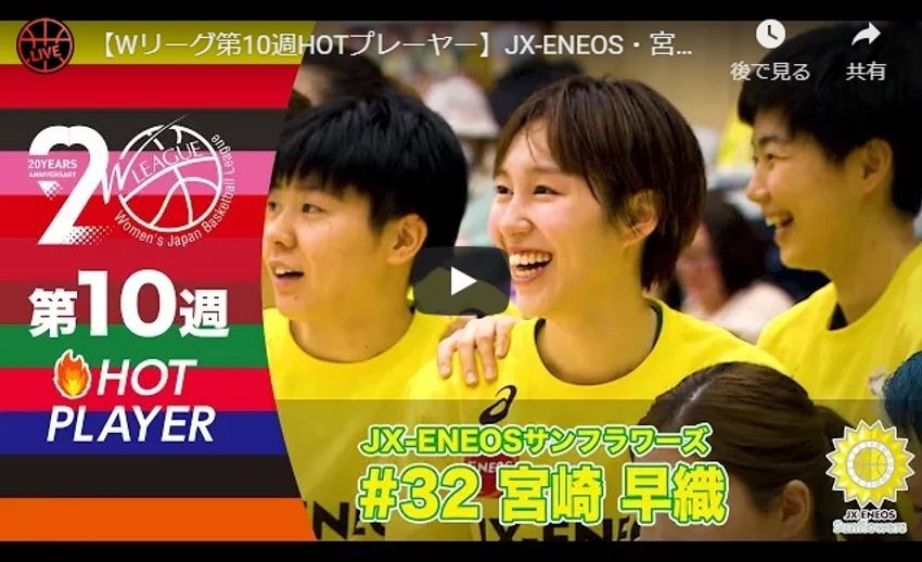 【動画/Wリーグ第10週HOTプレイヤー】宮崎早織(JX-ENEOS)プレー集