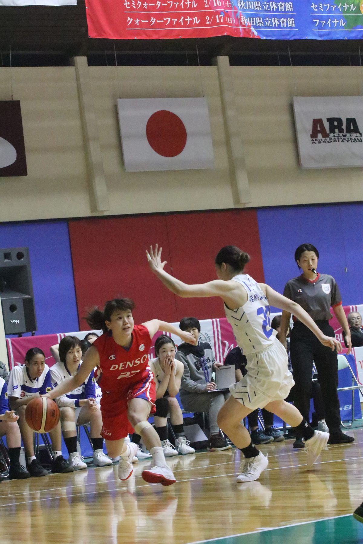 2月17日、秋田県立体育館にて、クォーターファイナルが行われ、デンソーは東京羽田、三菱電機はトヨタ紡織との対戦となった。 富士通から勝ち星を奪った東京羽田は、試合開始から勢いに乗り、前半までデンソーと互角の戦い。試合が動いたのは後半、リバウンドで苦しむ東京羽田に、デンソーの#8髙田は攻防にわたって奮起。また途中出場した#22田村の3ポイントで逆転をするなど活躍が光った。最後は69-66でデンソーが勝利。三菱電機対トヨタ紡織の一戦は、試合序盤、三菱電機にプレーに堅さが見られたものの、終わってみればスタート5人が全員2桁得点。その中でも、ポイントゲッターである#46渡邉はチームを鼓舞し、70-66でセミファイナルにステージをつなげた。2月16、17日の2日間で行われた4試合は、どの試合も4点差以内の熱い戦いだった。
