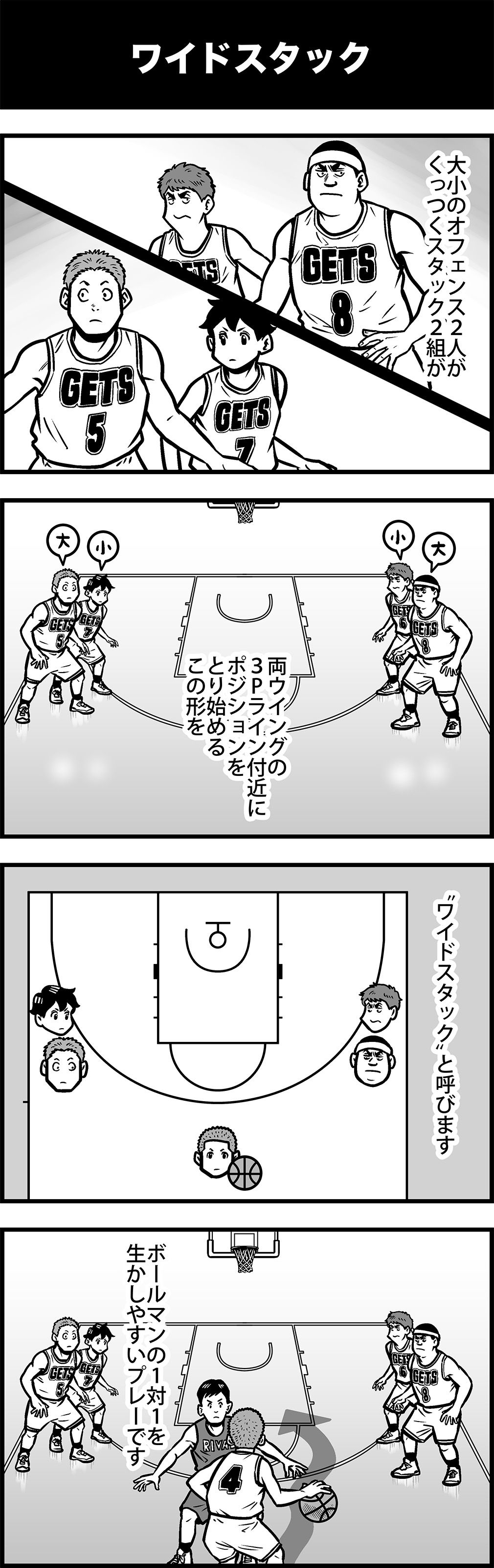 月刊バスケットボールで連載中の『まんが バスケットボール用語辞典』をウェブでも読めるように! 和製英語や造語ではなく、正しい英語のニュアンスで理解していくと、より分かりやすくなる。今回は“ワイドスタック” と、その活用法について。
