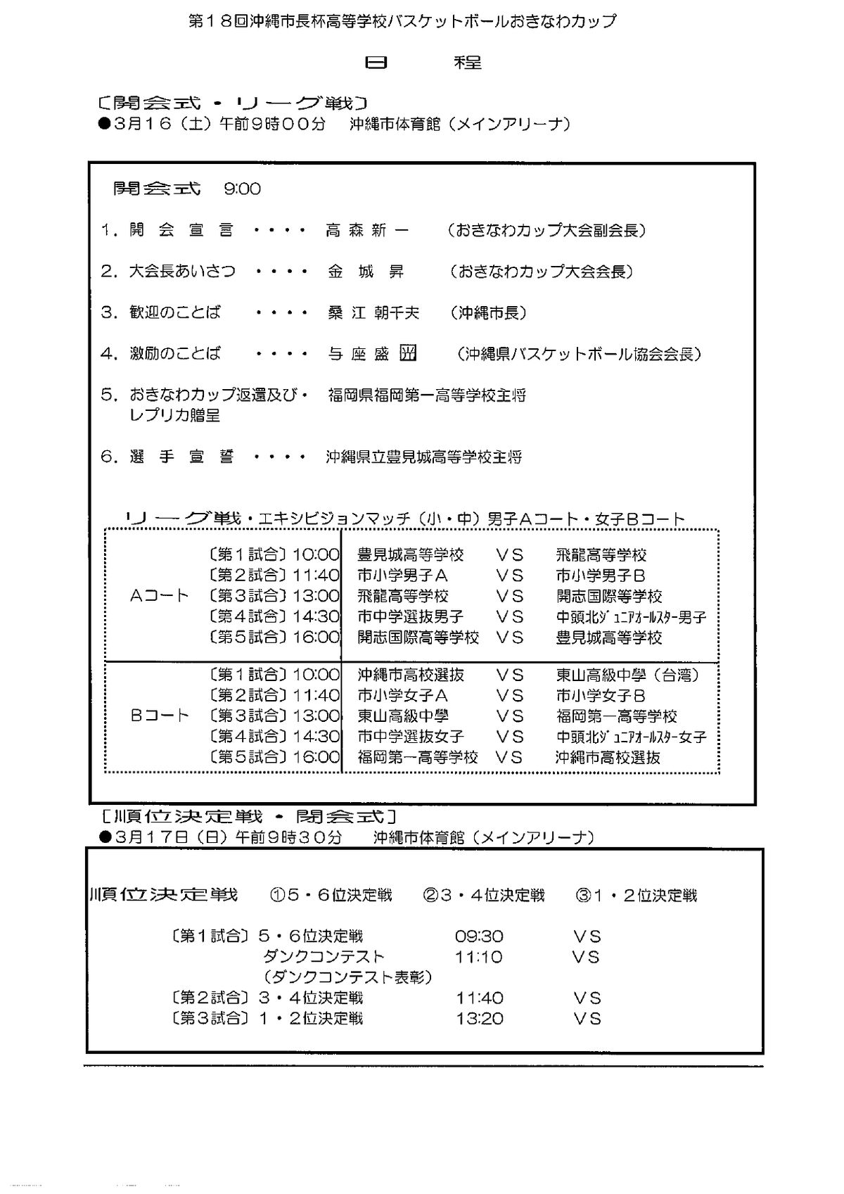 “第18回沖縄市長高校バスケットボールおきなわカップ”参加チーム&スケジュール