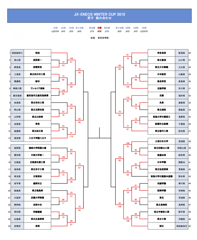 ◯明成85−60アレセイア湘南● ◯土浦日本大103−60日本学園● ◯帝京長岡69−60北陸学院● ◯桜丘108−93東北●