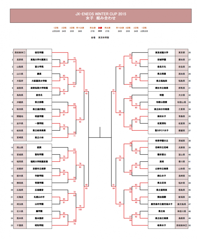 ウインターカップ2015 4日目の結果(男子3回戦/女子準々決勝)