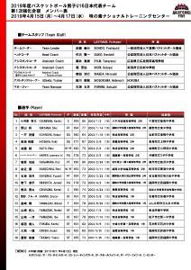 2019年度“男子U16日本代表チーム”第1次強化合宿参加選手18名発表