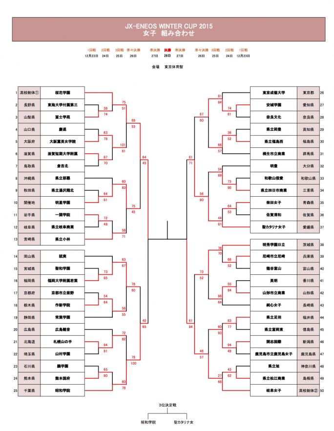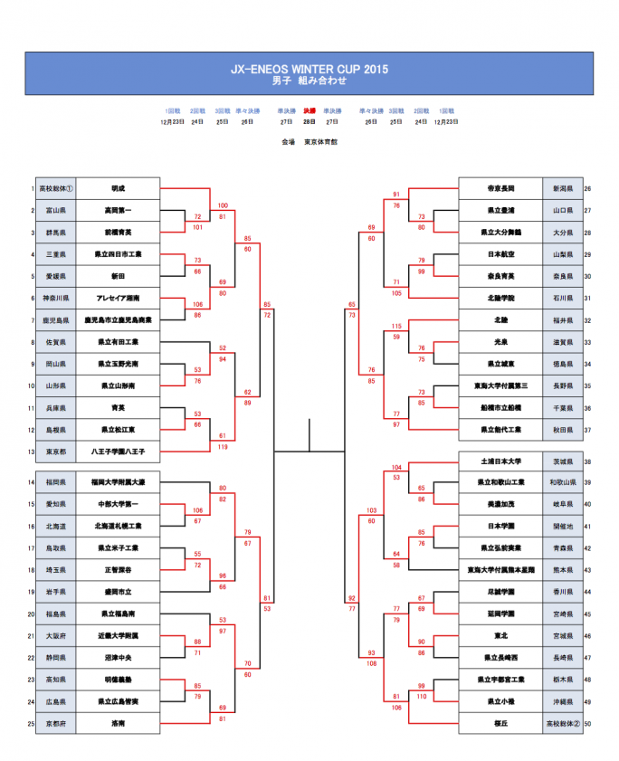 ウインターカップ2015 5日目の結果(男子準々決勝/女子準決勝)