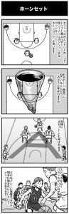 ★ホーン・セット[horn set]…トップ、両ウイング、両コーナーにポジションを取ったエントリーから始まるセット。ホーン(角笛)に形が似ているところから呼ばれ、“Aセット”などと言われることもある。近年、NBAや世界各国のチームで使用しているポビュラーなセット。