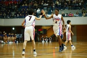 対する男子は、ウインターカップ4位の中部大一が激しいディフェンスと速攻を主体に挑み、終わってみれば、どの試合も危なげなく勝利。#13坂本が30得点の活躍を見せた沼津中央との決勝戦でも昨年から主力の#9ディクソンを中心に豊富な運動量で圧倒した。(決勝のスコアは84-73)。 また、決勝では敗れはしたものの、準決勝では静岡県1位を破った静岡3位の沼津中央。#15アンドレの高さだけでなく、#8山田のタフな動きも光っていた。
