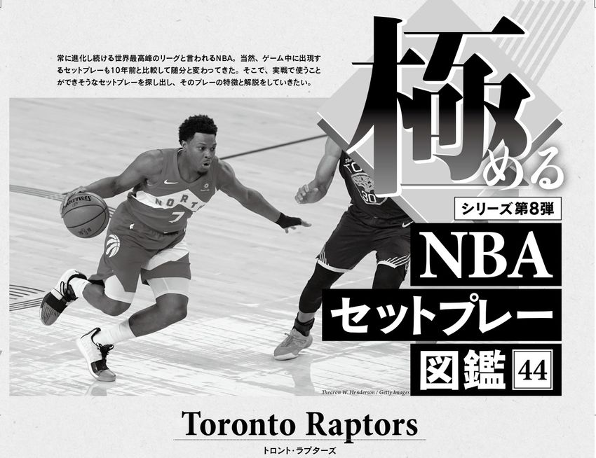 “「極める」NBAセットプレー図鑑44”は、NBAファイナルで優勝して初めてカナダのチャンピオンチームとなった『トロント・ラプターズ』のプレーを解説している。