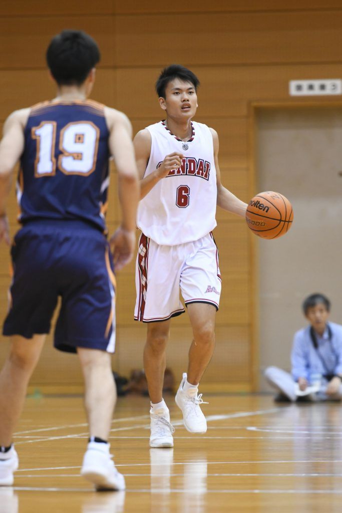地元のファンや学校の生徒など、観客席は川内のチームカラーである真っ赤な色に染まっていた。席の後ろに立ち見客が幾重にも人垣を作るほどで、聞くところによるとこの試合で2000人の観客の出入りがあったという。シュートが決まればワッと歓喜を爆発させ、ディフェンスで相手を止めれば拍手喝采。そんな熱狂的な観客の熱視線の先にいたのが、川内のエース#6野口侑真だ。