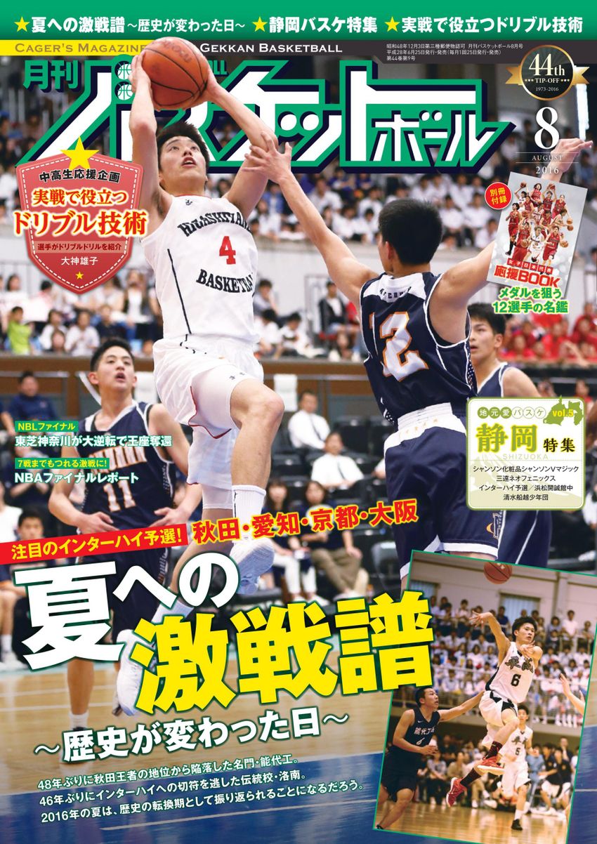 今月の月刊バスケットボールは… 2016年8月号 6月25日(土)発売! 今月号の特集は、全国各地で行われた熱いインターハイ予選! 能代工が48年ぶり、洛南が46年ぶりにインターハイへの切符を逃すなど、大きな話題となった今年のインターハイ予選。 編集部が現場で目にした、熱い戦いの裏側をたっぷりとお伝えします。