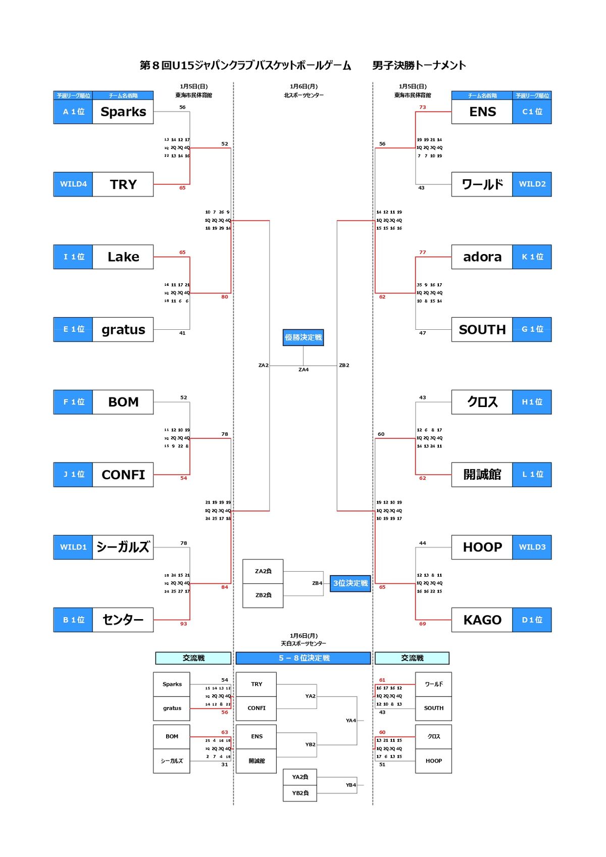 【U15 JCBG 2020】1月5日男女決勝トーナメント結果