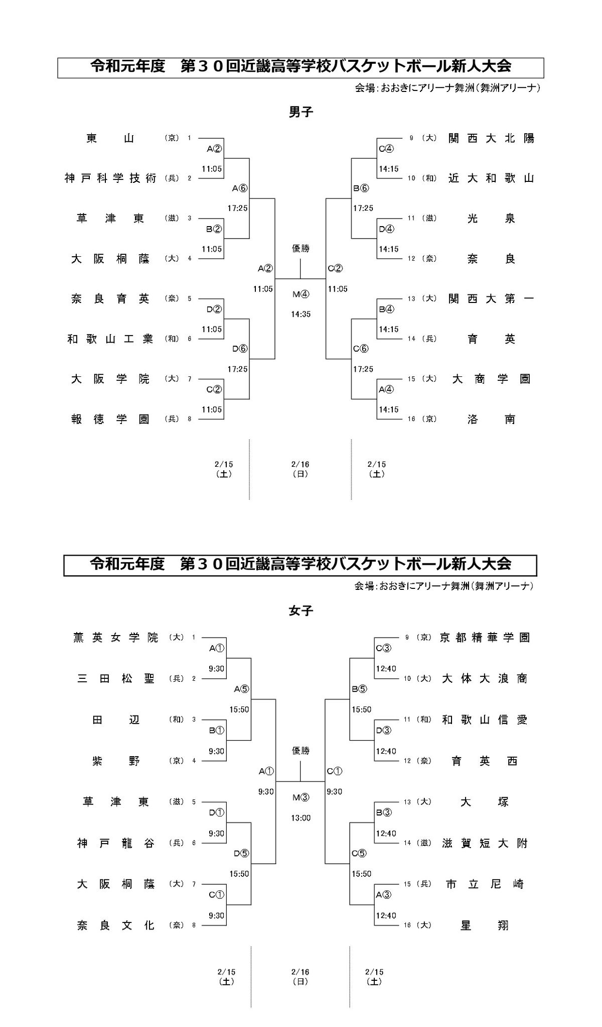 2月15、16日に“近畿高校新人大会”がおおきにアリーナ舞洲(舞洲アリーナ/大阪)で開催される。男女組み合わせは以下のとおりとなった。