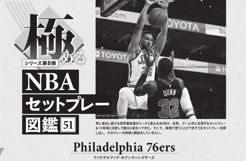 最新・月刊バスケットボール4月号“「極める」NBAセットプレー図鑑52”では、フィラデルフィア・セブンティシクサーズのさまざまなプレーを紹介している。