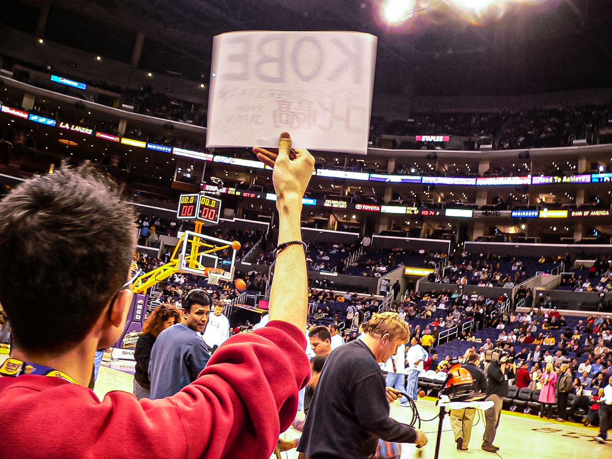 コービーの虜になった僕は、アキレス腱を切ってしまった2013年まで毎シーズン、コービーを観戦しに行きました。予算とも相談しつつ、できるだけ前の方の席を押さえ、なるべく目立つ格好をして、手作りのボードを掲げて声援を送る。これを毎年繰り返しました。リアクションをもらう事は2005年以降ありませんでしたが、明らかにこちらを見ていて目が合う瞬間が何度もあり、「またあの日本人が来ているのか」くらいに思ってくれていたらうれしいなと考えながら観戦したものです。
