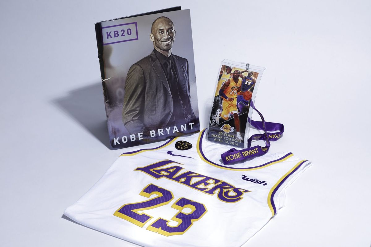 コービーの引退試合当日に配布されたプログラムとチケット、そしてKBパッチを縫い付けたレブロンのジャージー。いずれもかけがえのない宝物だ(著者所持品)