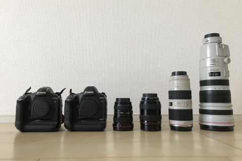 試合の撮影ではカメラ2台と、望遠レンズや広角レンズなどそれぞれ特徴が違う4本のレンズを使用しています。レンズによって写真の印象が変わるので、試合の状況や会場の雰囲気によって使い分けながら撮影しています。