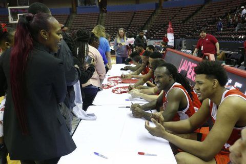 ハッスルのファンの方たちはとても楽しそうにしていたのが印象的で、入り口で配っていたタオルを回しながら熱心に応援していました。試合後はコート上でサイン会もあり、選手とファンの方が交流できます。NBAの試合後にこういうファンサービスはなかなか行われないので、距離の近いイベントはファンの方たちには嬉しい時間ですね。