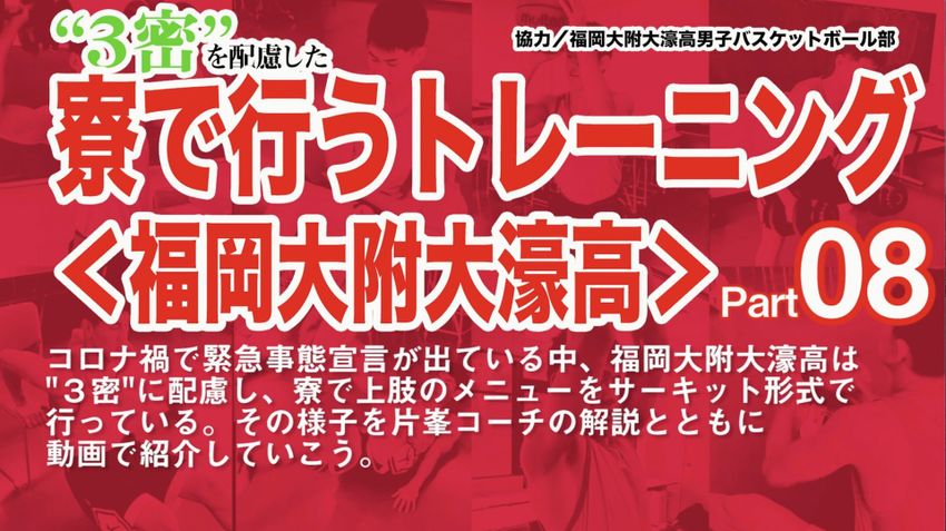 ★コロナ禍で緊急事態宣言が出ている中、福岡大附大濠高は"3密"に配慮し、寮で上肢のメニューをサーキット形式で行っている。その様子を片峯コーチの解説とともに動画で紹介していこう(全9回)。