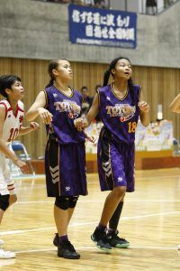 福井全中は、本日の決勝トーナメント1、2回戦を経てベスト4進出チームが決まった。 女子は、豊野(埼玉)、長良(愛知)、二島(福岡)、京都精華学園(京都)の4チーム。そこで、ここでは明日の準決勝の対戦カードともに見所をお伝えする。 ■豊野−長良 177cmの⑱中澤、173cmの⑰倉持という絶対的な高さを持つ豊野。ここまでその高さを存分に生かした戦いで勝ち上がってきた。特に倉持は、高さだけでなく体が強く、パワフルなプレイでインサイドを制圧。この2人の高さは長良にとって脅威となるだろう。加えて、⑤坂齋、⑩山下らアウトサイド陣も思い切りの良いプレイを見せており、相手にとってはインサイドもアウトサイドも警戒しないといけない厄介なチームだ。 対する長良は、ここまで僅差の試合をものにしてきているチーム。172cm⑦大野、169cm⑥竹内、167cm④江坂の3人がインサイドプレイのみならず絶妙な合わせからのミドルシュートも放ち、ディフェンスからすれば的が絞りにくい布陣。また、ガードの⑩島田が2年生ながらハツラツとしたプレイで、決勝トーナメント2回戦(vs.陽南)でも攻防に渡って活躍。勢いに乗っているチームと言える。 ハイスコアになれば豊野に分がありそうだが、長良は巧みな試合運びで決勝トーナメント2回戦の陽南戦でロースコアの展開に持ち込んで勝利しており、どちらが先に主導権を握るかが注目となる。