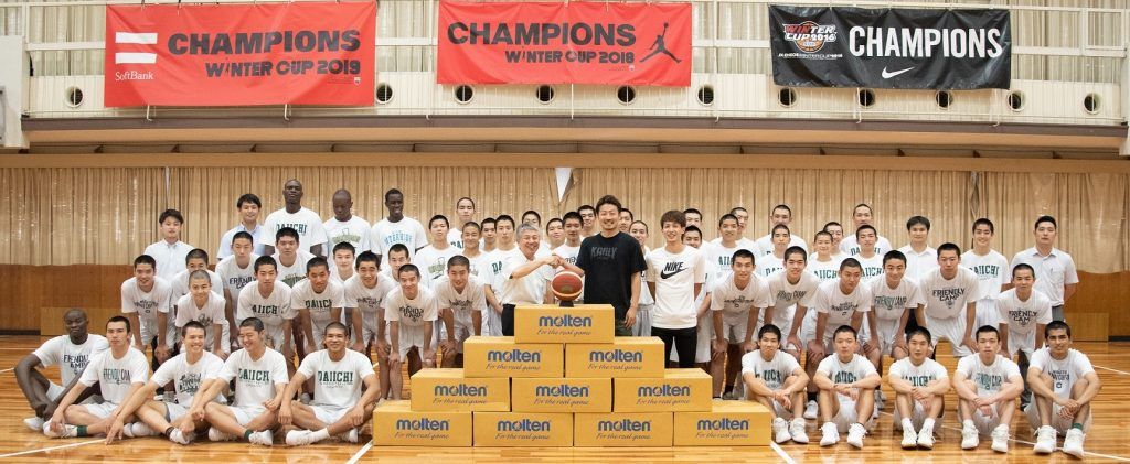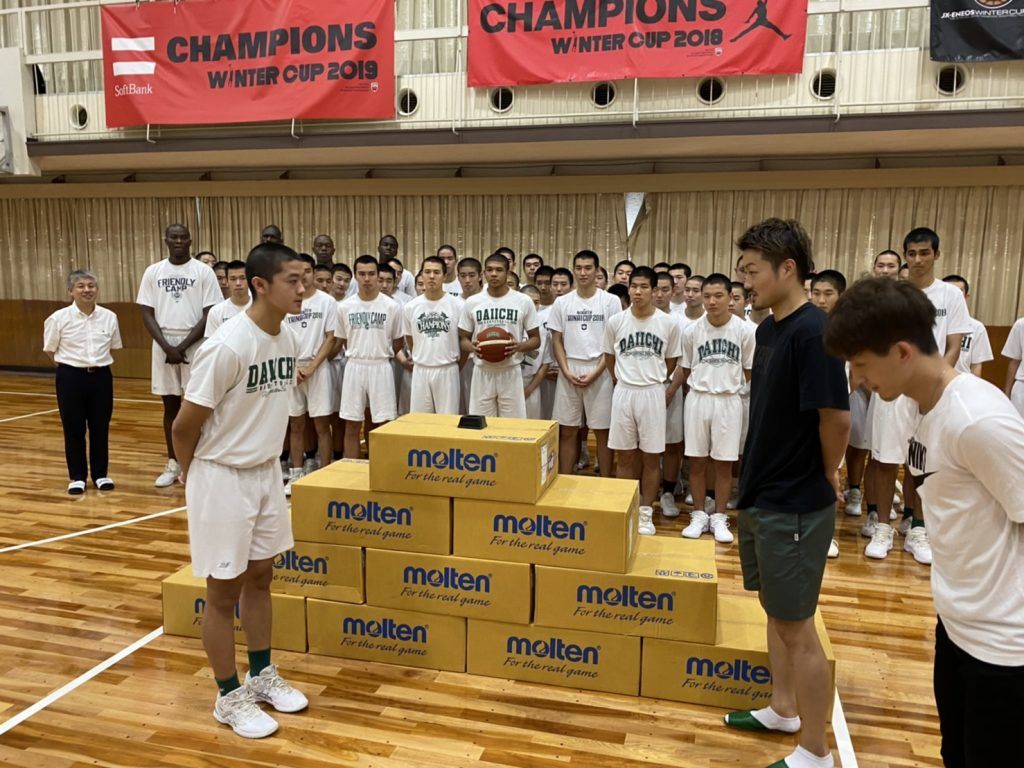キャプテンの松本宗志は「ボールの寄贈をありがとうございます。いただいたボールを使ってウインターカップ3連覇を目指して頑張りたいと思いますので、これからもご支援のほどよろしくお願いいたします」と意気込みを語った。