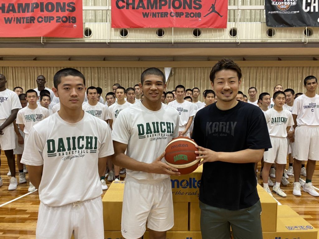 福岡第一OBから後輩たちへバスケットボール50球を贈呈! Bリーグを代表して狩野祐介(名古屋D)がエールを送る