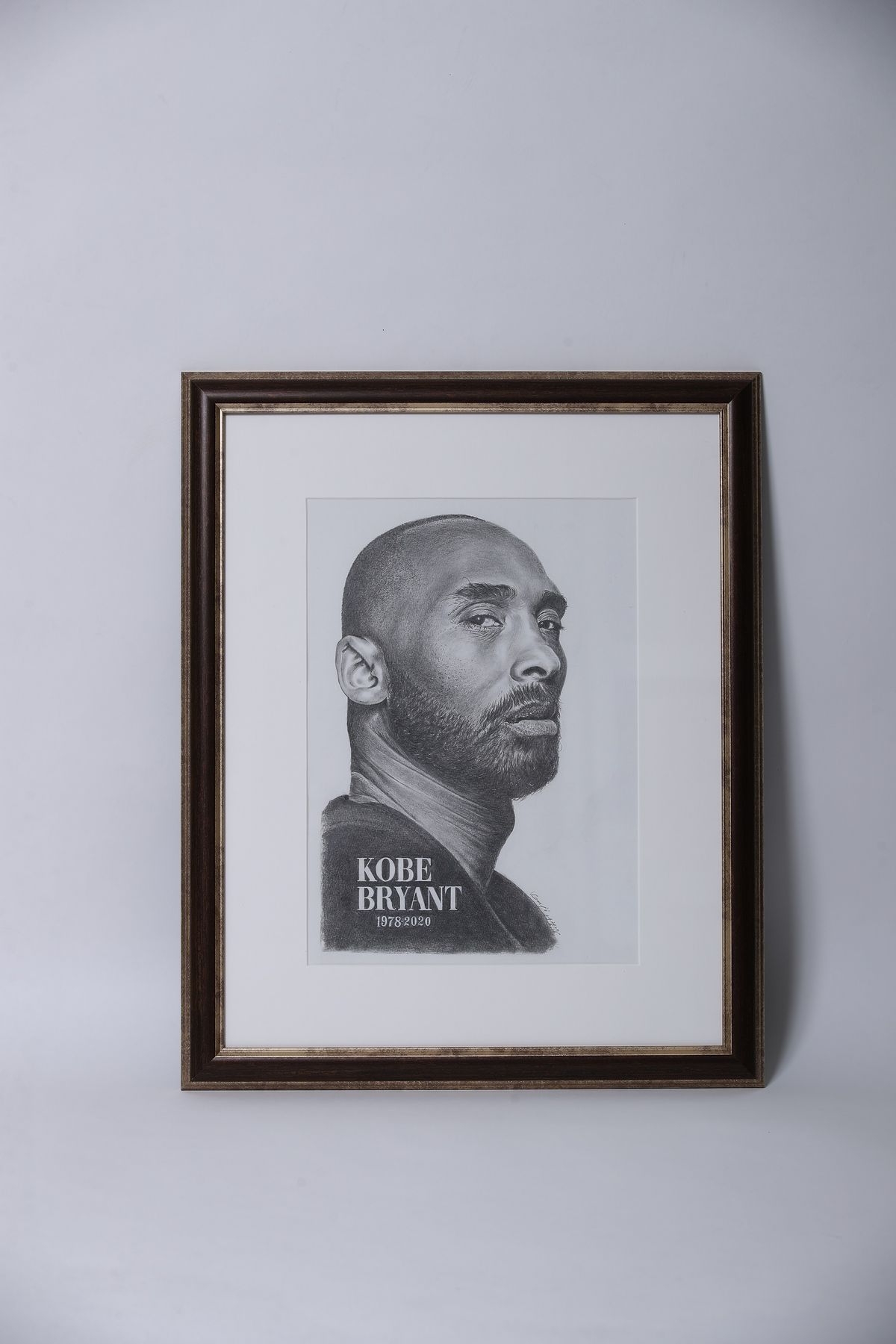 『英雄伝説 コービー・ブライアント』の表紙をモティーフとして描かれた精巧な鉛筆画。この作品は思わぬ驚きとともに、私たちの手元に届けられました。