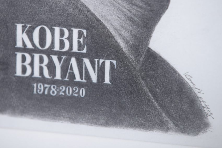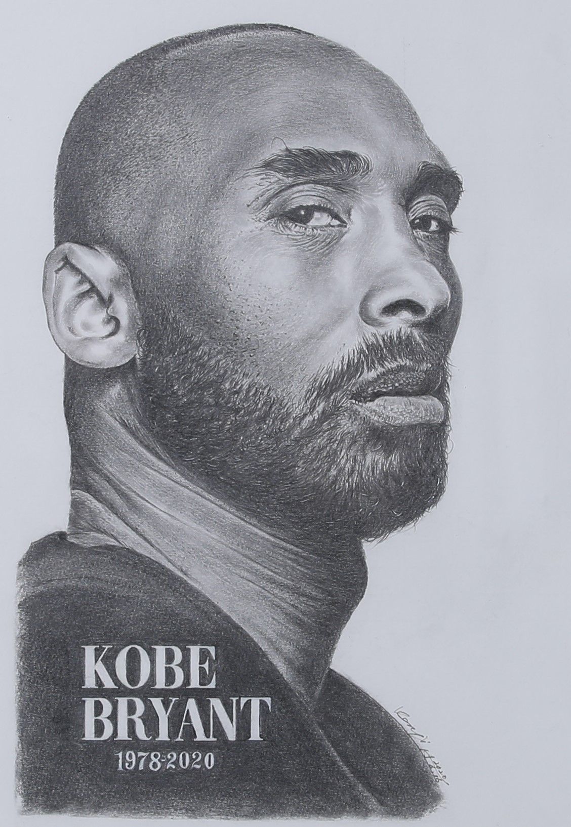 原 健二さんによるコービーの鉛筆画。息を呑むその精巧さに、30歳以上も若かったコービーの命に向けられた原さんの哀悼の意があふれています