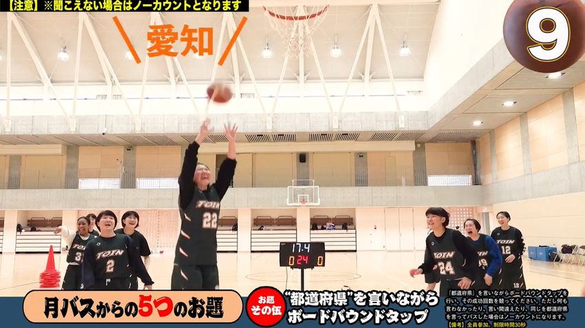 ボードバウンドタップの回数を競ってもらう【お題その伍】は、“都道府県”を言いながら行ってください。タップ時に着地していたり、何も言わなかったり、言い間違えたり、同じ都道府県を言った場合はノーカウントになります。