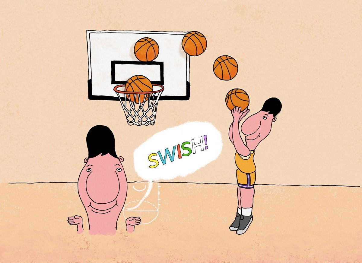 新しく始まった『B IS FOR BASKETBALL』は、バスケットボールに関連する英語表現を毎号紹介する企画です。学習するというよりも楽しむことが目的。固くならずリラックスして、月バス誌面とこのページのテキスト、さらにここで紹介している動画を一緒にご覧いただくと、結構楽しんでいただけるのではないかと思います。第1回目はswishという言葉を選びました。