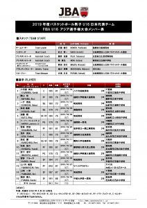 「2019年度U16日本代表チーム」の活動としての区切りとして、最終メンバー(「FIBA U16アジア選手権」出場予定選手)を公表