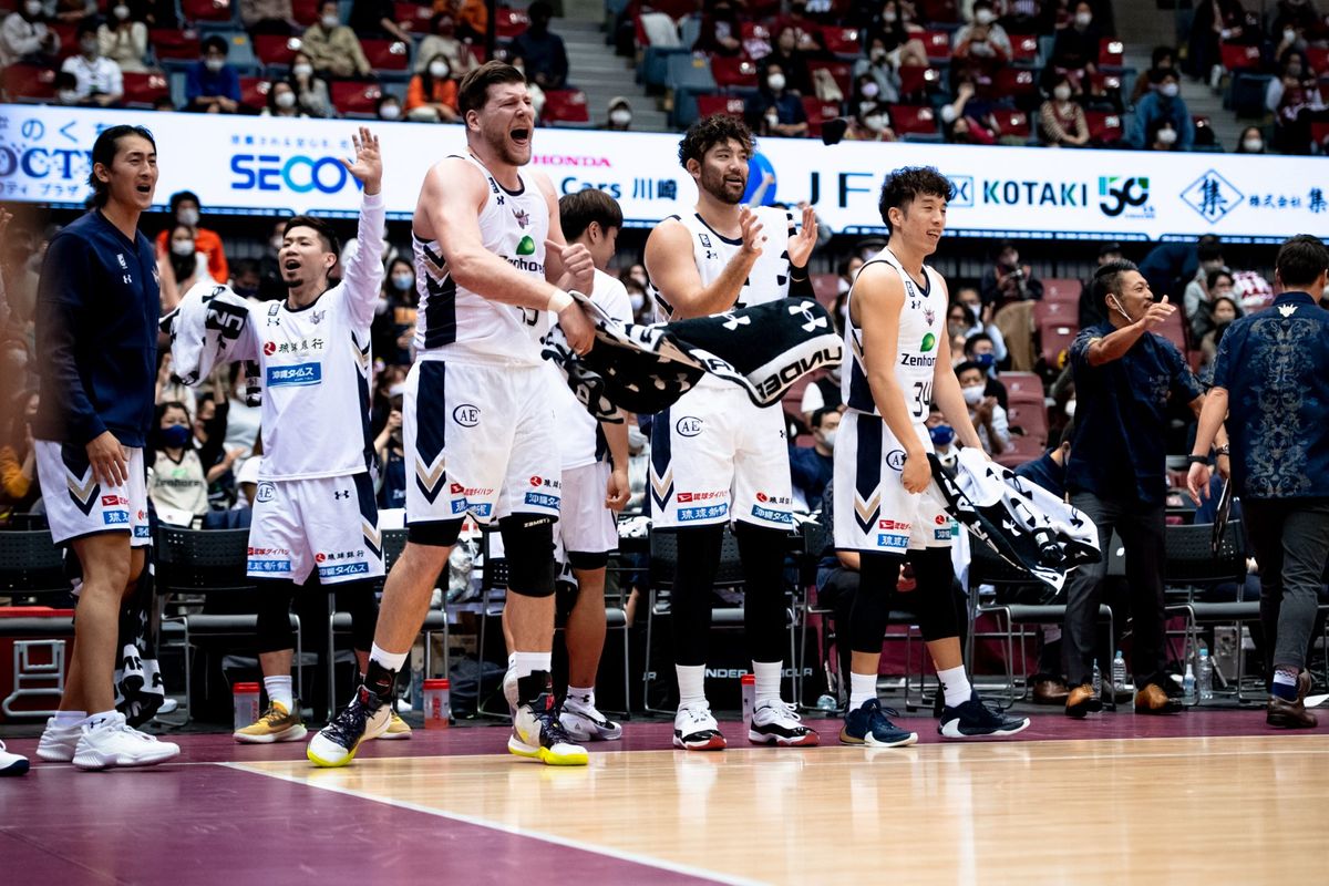 試合の方も完全に琉球が支配し、コートとベンチが一体となって川崎の息の根を止める快勝で、連勝を9とした。