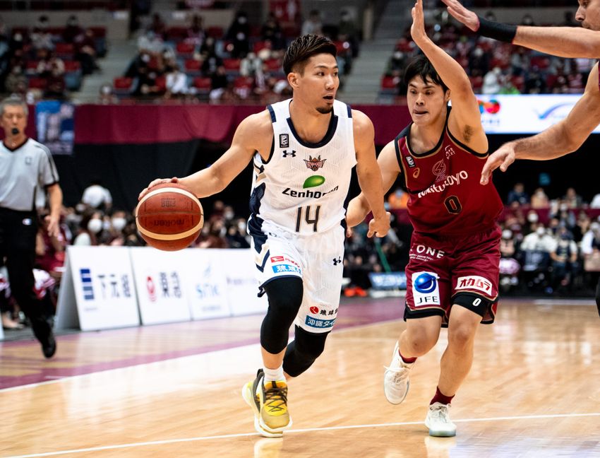 川崎との第2戦は前半こそリードを許したものの、後半に入ると強度の高いディフェンスで川崎のターンオーバーを誘発し、逆転に成功。そのまま逃げ切った。6人が二桁得点を挙げ、リバウンドでも圧倒する強さで怒涛の10連勝。岸本も4本の3Pを沈めてチームを援護射撃した。